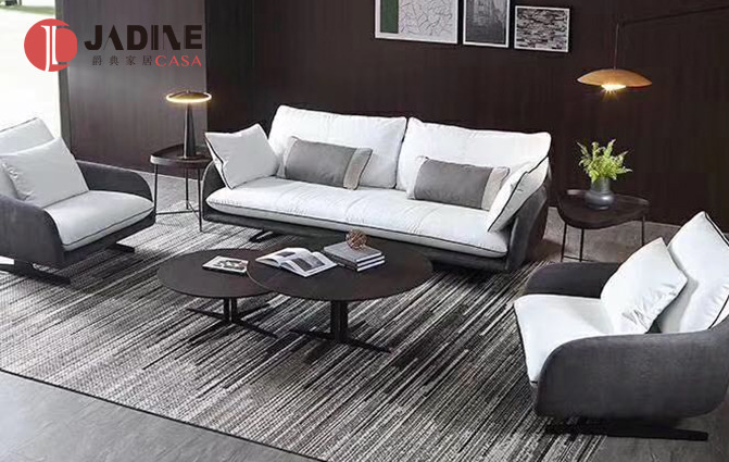 进口落叶松实木内框架、磨砂五金底架、实木沙发脚、高端面料、高密度高回弹海绵、高蓬松羽绒、高端蛇形弹簧。