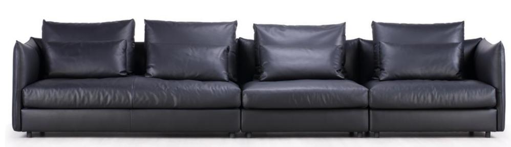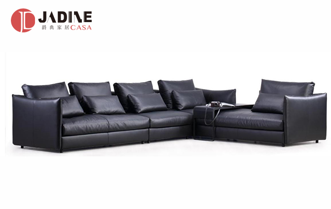 进口落叶松实木内框架、实木沙发脚、高端面料、进口A级牛皮、高密度高回弹海绵、高蓬松羽绒、高端蛇形弹簧。