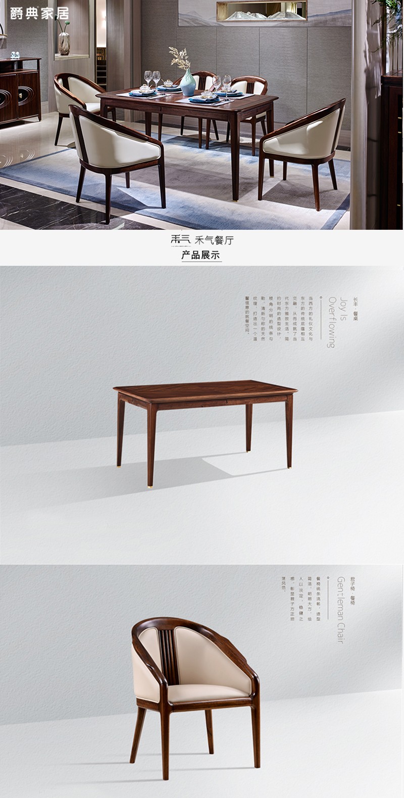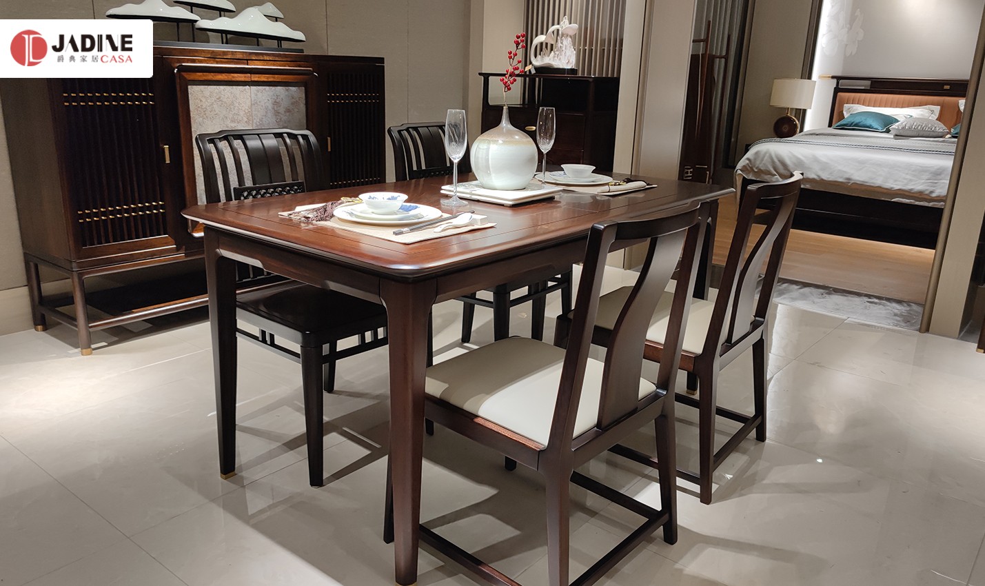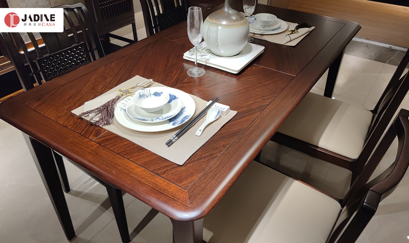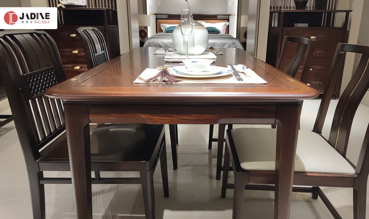 南洋迪克禾气新中式方形黑檀餐桌椅组合