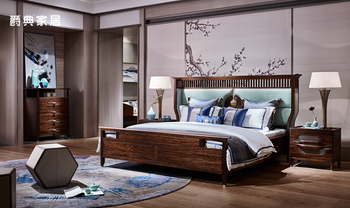 南洋迪克禾气东方雅致全实木黑檀新中式大床