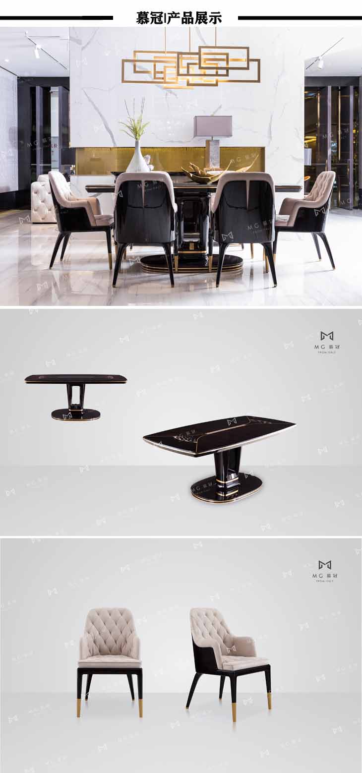 慕冠当代轻奢实木不锈钢描边长餐桌椅组合
