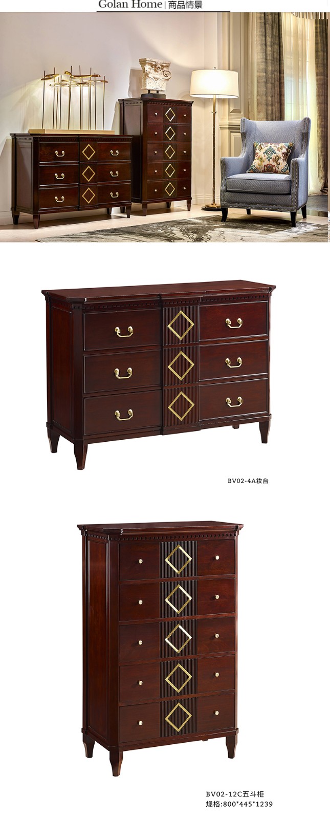 优胜美地V5美式实木斗柜抽屉式储物柜