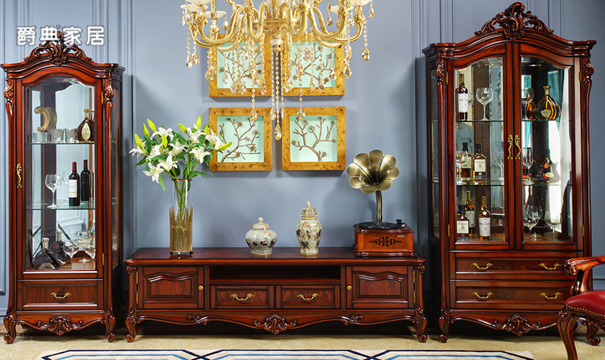 奢艺绘法式高雅实木桃花芯木电视机柜
