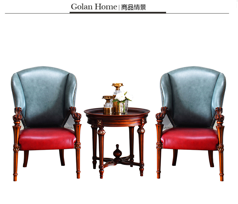 奢艺绘法式秀雅实木真皮单人沙发休闲椅