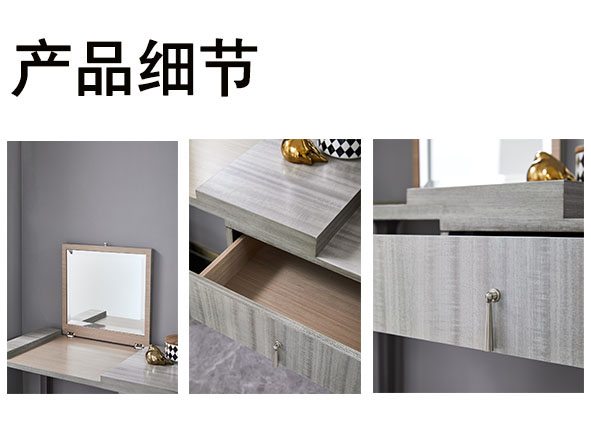 使用亚克力拉手、亚克力脚、不锈钢拉手及不锈钢脚套、搭配自闭式静音滑轨,更有甚者采用进口岩板台面作为搭配,迎合现代人群的消费观,多种不同种类材料复合搭配,营造现代舒适实用的家具质感。