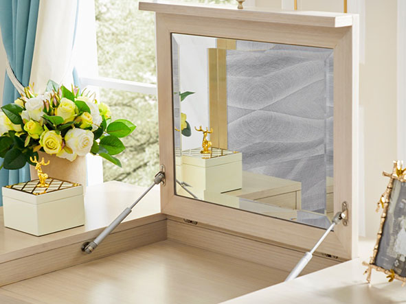 使用亚克力拉手、亚克力脚、不锈钢拉手及不锈钢脚套、搭配自闭式静音滑轨,更有甚者采用进口岩板台面作为搭配,迎合现代人群的消费观,多种不同种类材料复合搭配,营造现代舒适实用的家具质感。