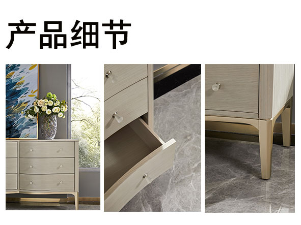 使用亚克力拉手、亚克力脚、不锈钢拉手及不锈钢脚套、搭配自闭式静音滑轨,更有甚者采用进口岩板台面作为搭配,迎合现代人群的消费观,多种不同种类材料复合搭配,营造现代舒适实用的家具质感。