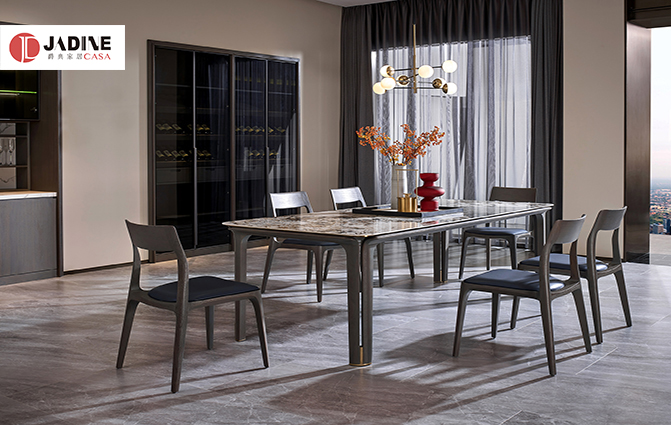 餐桌面纹理像奢石一样,每一块都不一样,独一无二