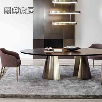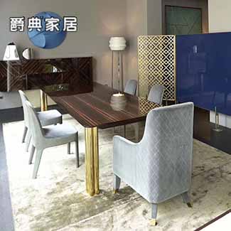 Rugiano意式轻奢金属长方形餐桌椅