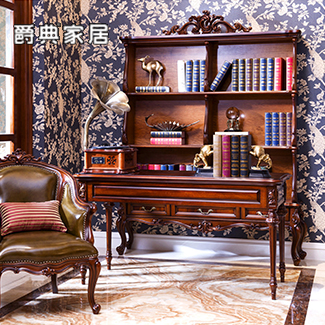 奢艺绘欧式深色书房实木雕花书桌椅