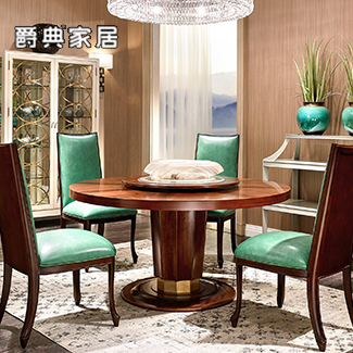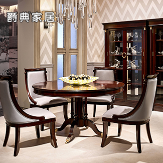 优胜美地·V5美式餐厅桃花芯木圆形餐桌椅