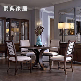 优胜美地·V5美式餐厅桃花芯圆形餐桌椅