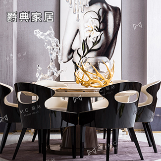 慕冠当代轻奢大理石圆桌带转盘餐桌椅