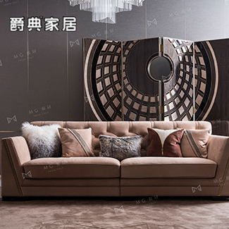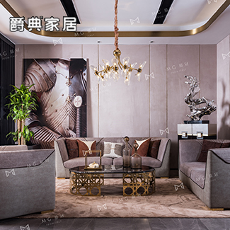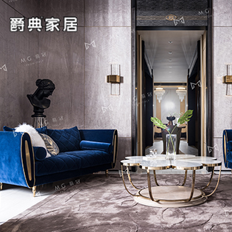慕冠当代轻奢客厅沙发丝绒金属质感沙发