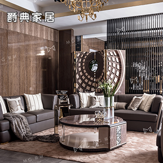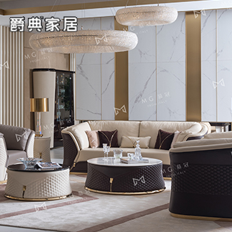 慕冠轻奢风现代简约客厅真皮沙发组合
