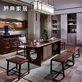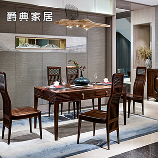 南洋迪克和气简约禅意全实木新中式餐桌椅