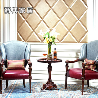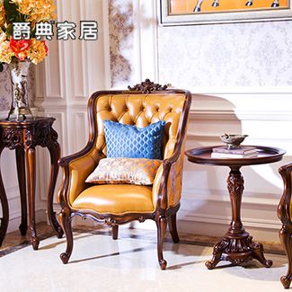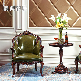 奢艺绘法式奢雅实木真皮休闲椅