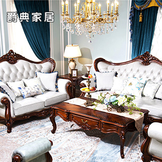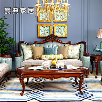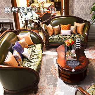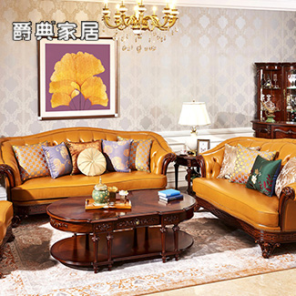 奢艺绘法式系列雅奢实木真皮沙发组合