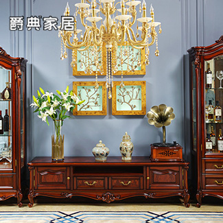 奢艺绘法式高雅实木桃花芯木电视机柜