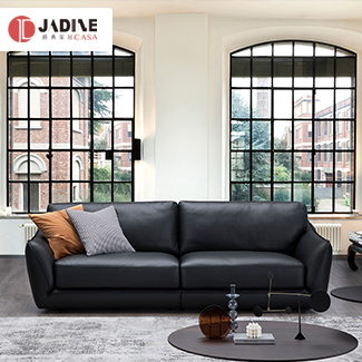 爵典家居槺柏真皮黑色沙发