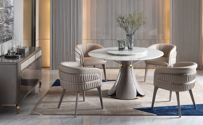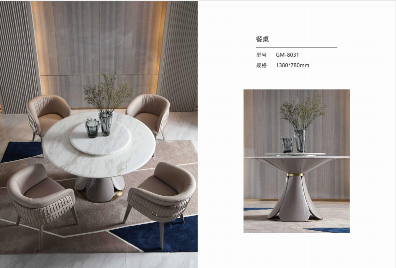 格慕花瓣底座设计师款大理石圆餐桌椅