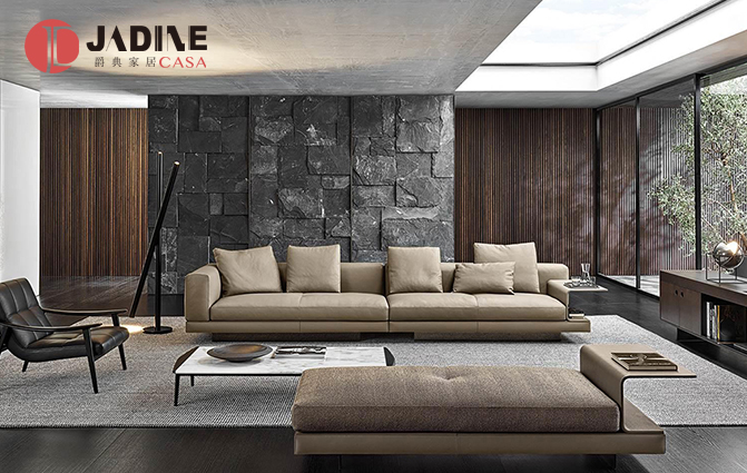 进口落叶松实木内框架、不锈钢五金脚、优质马鞍皮、高端面料、进口A级牛皮、浅缝针线精细超纤皮、头枕、不锈钢五金扶手、高密度高回弹海绵、高蓬松羽绒、高端蛇形弹簧。