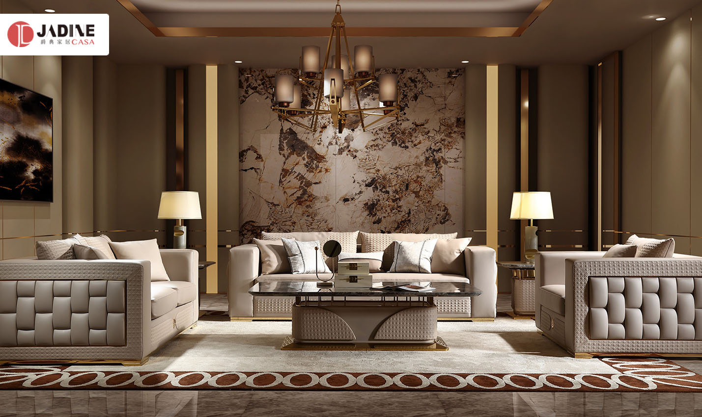 格慕现代轻奢别墅客厅真皮沙发组合