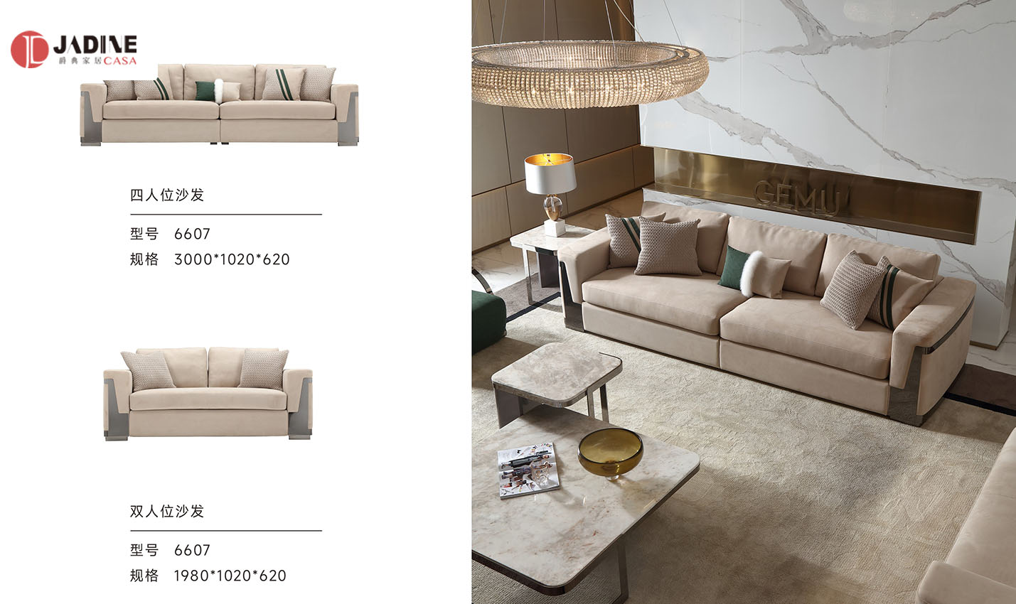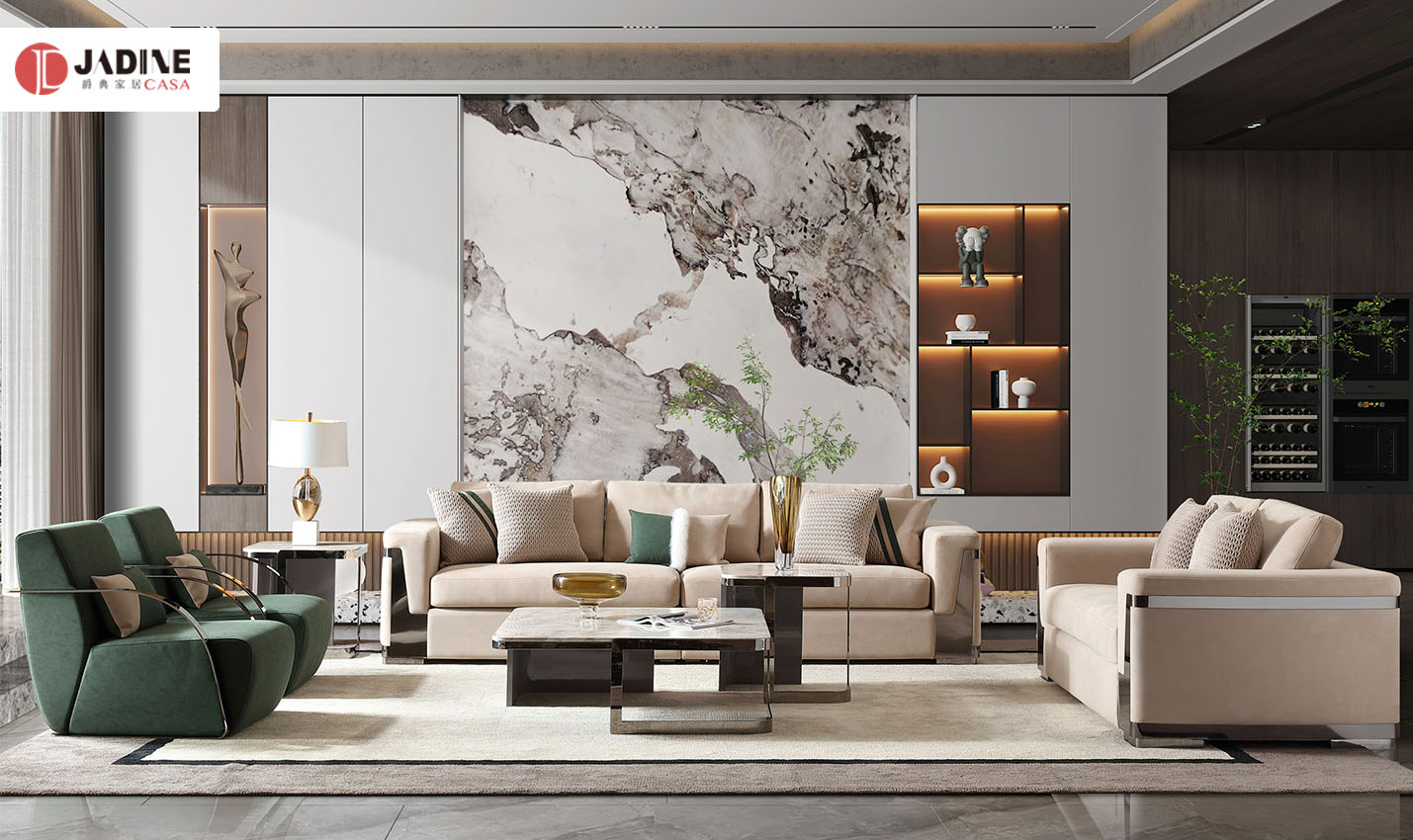 格慕轻奢金属别墅大平层真皮沙发组合