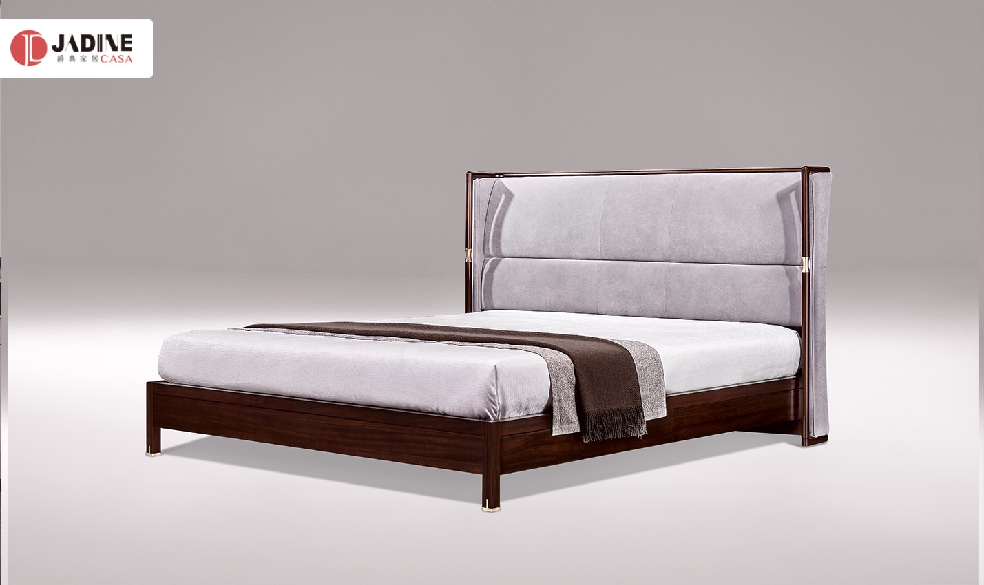 床屏用金咖色实木框架搭配羽灰色软包