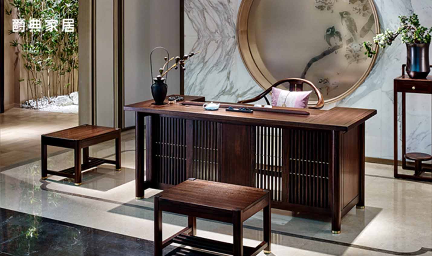 南洋迪克禾气全实木黑檀新中式禅意拆桌椅组合