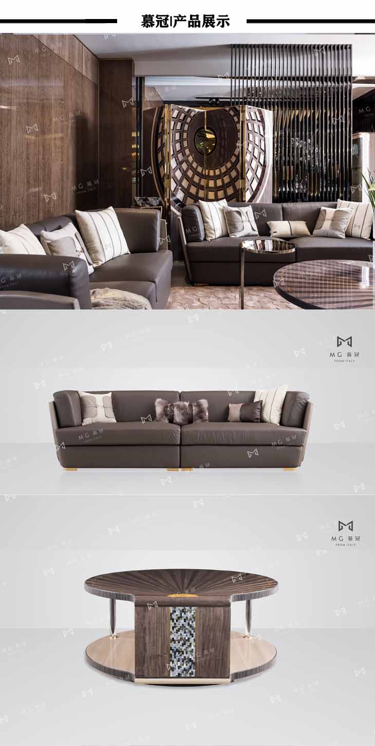 慕冠头层牛皮沙发现代轻奢客厅沙发组合