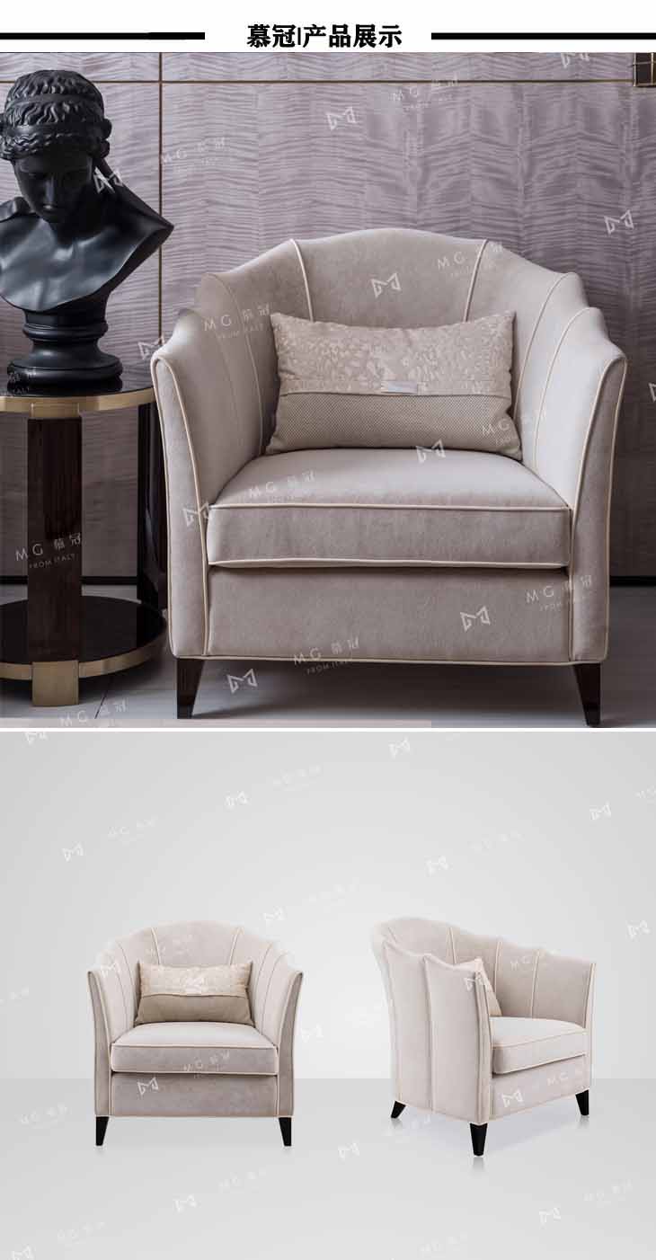 慕冠轻奢风当代简约客厅丝绒沙发休闲椅