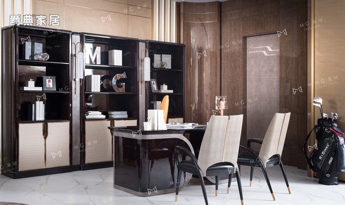 慕冠现代时尚轻奢风写字台书桌椅