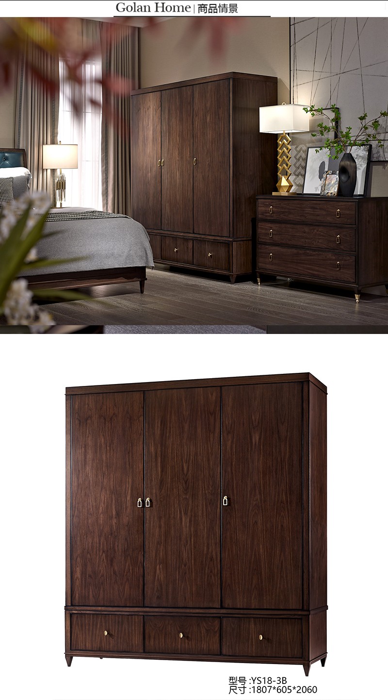 优胜美地V5美式简约实木三门衣柜