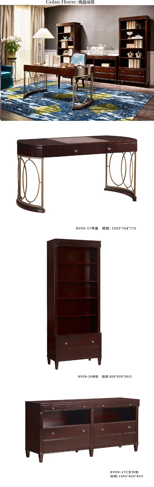 优胜美地V5美式简约实木书桌书柜