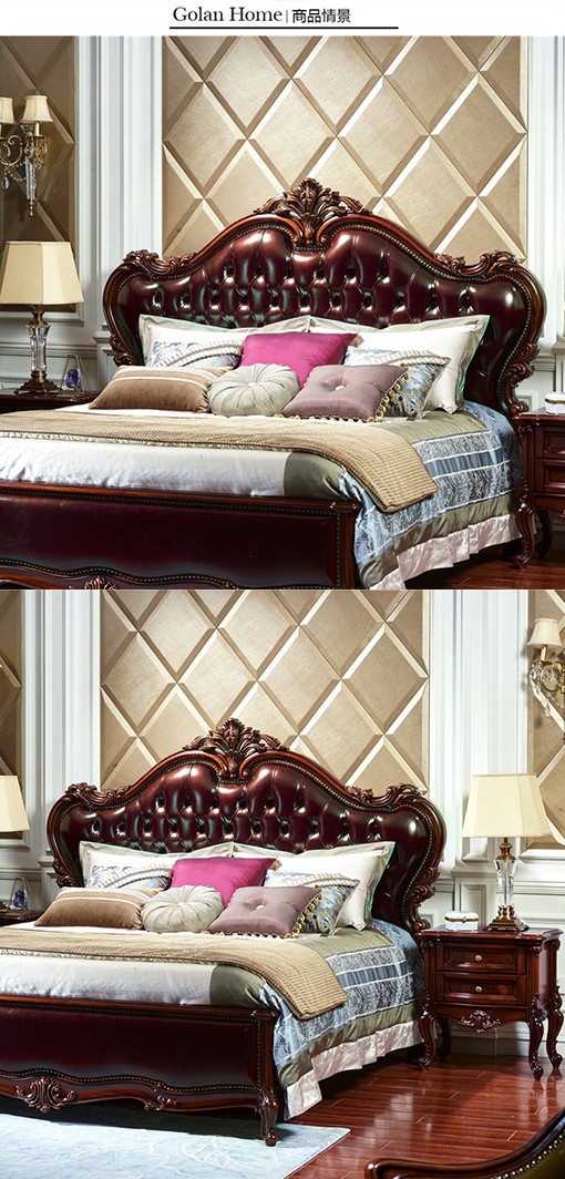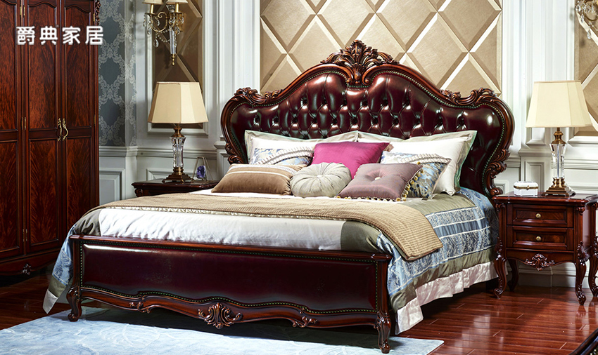 奢艺绘欧式奢雅实木雕花真皮大床