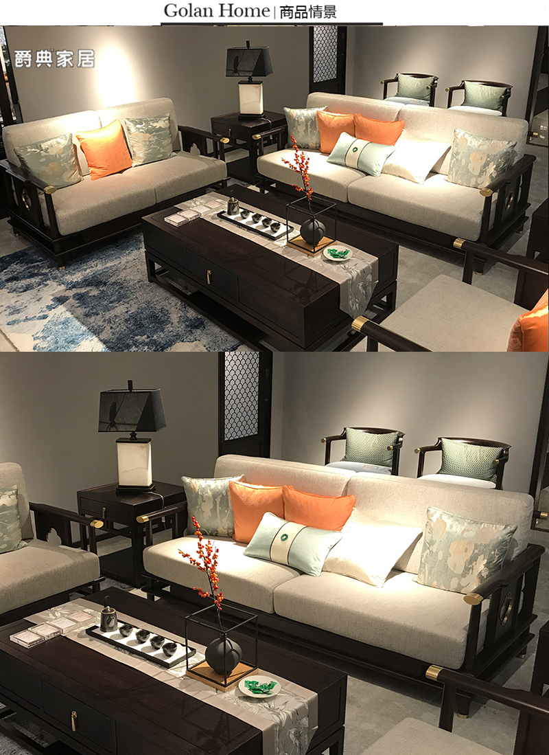 亦境新中式客厅黑檀实木布艺沙发