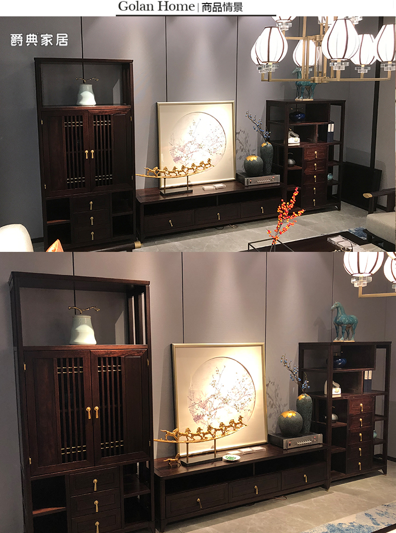 亦境新中式客厅实木黑檀组合厅柜地柜