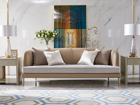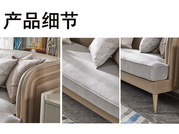 使用亚克力拉手、亚克力脚、不锈钢拉手及不锈钢脚套、搭配自闭式静音滑轨,更有甚者采用进口岩板台面作为搭配,迎合现代人群的消费观,多种不同种类材料复合搭配,营造现代舒适实用的家具质感。