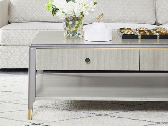 使用亚克力拉手、亚克力脚、不锈钢拉手及不锈钢脚套、搭配自闭式静音滑轨,更有甚者采用进口岩板台面作为搭配,迎合现代人群的消费观,多种不同种类材料复合搭配,营造现代舒适实用的家具质感。