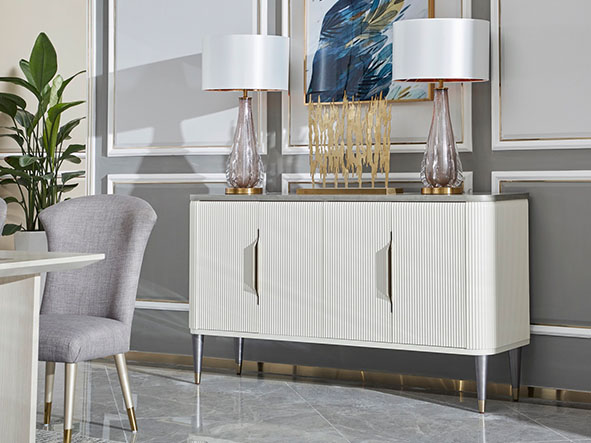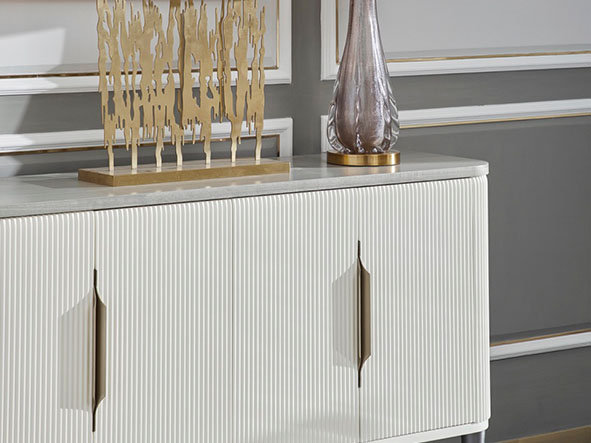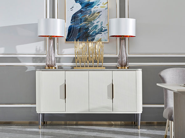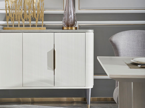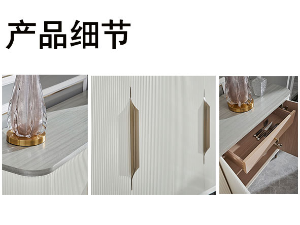 使用亚克力拉手、亚克力脚、不锈钢拉手及不锈钢脚套、搭配自闭式静音滑轨,更有甚者采用进口岩板台面作为搭配,迎合现代人群的消费观,多种不同种类材料复合搭配,营造现代舒适实用的家具质感。