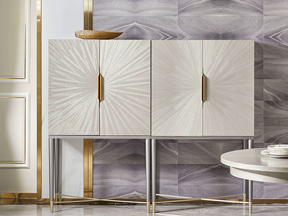 使用亚克力拉手、亚克力脚、不锈钢拉手及不锈钢脚套、搭配自闭式静音滑轨,更有甚者采用进口岩板台面作为搭配,迎合现代人群的消费观,多种不同种类材料复合搭配,营造现代舒适实用的家具质感。