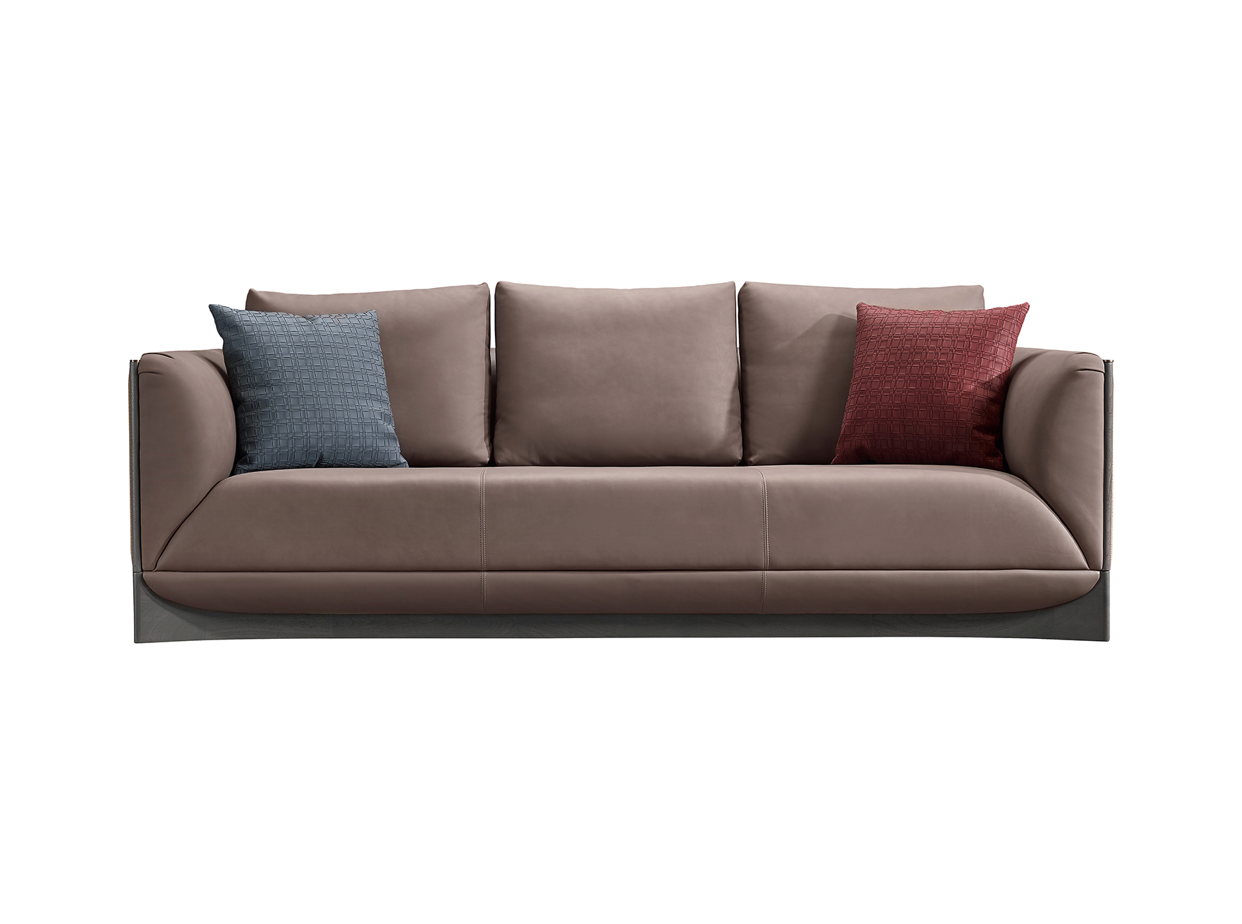 沙发和木框架方向一致,曲线内收,造型简洁但工艺难度大。坐感舒适,坐姿随意。